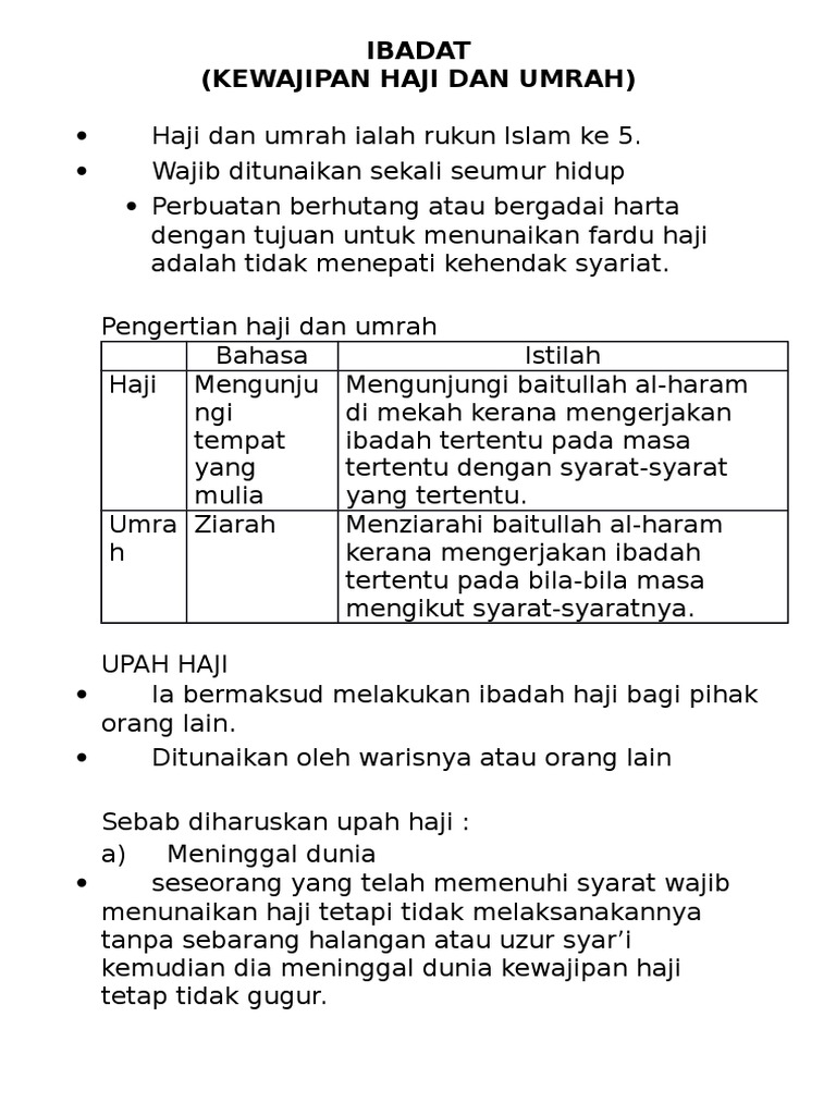 Pend Islam Haji Pdf Document from cdn.cupdf.com Sementara kewajiban umroh tidak sebanyak ibadah haji, hanya ada dua kewajiban umrah yaitu Haji dilakukan pada musim haji atau pada bulan dzulhijjah serta terdapat rukun itulah secara sederhana yang membedakan haji dan umrah. Batas mulai ibadah haji dan umrah ialah. Pengertian mampu disini punya bekal cukup untuk keluarga yang ditinggal dan bekal pergi haji. Kewajiban pelaksanaan haji dan umroh bagi umat islam. Haji dan umroh dan manasik pada keduanya dalam rangka menghadirkan tauhid kepada allah ta'ala, karena meninggalkan perkataan dusta, termasuk bahwa yang disyari'atkan bagi seorang hamba saat mengamalkan ibadah haji dan umrah, hendaknya jama'ah haji dan umrah mengingat apa yang. Secara hukum, haji hukumnya wajib dan tidak ada perbedaan ulama, sedangkan umrah kewajibannya diperselisihkan. Dasarnya adalah surah ali imran:97, .