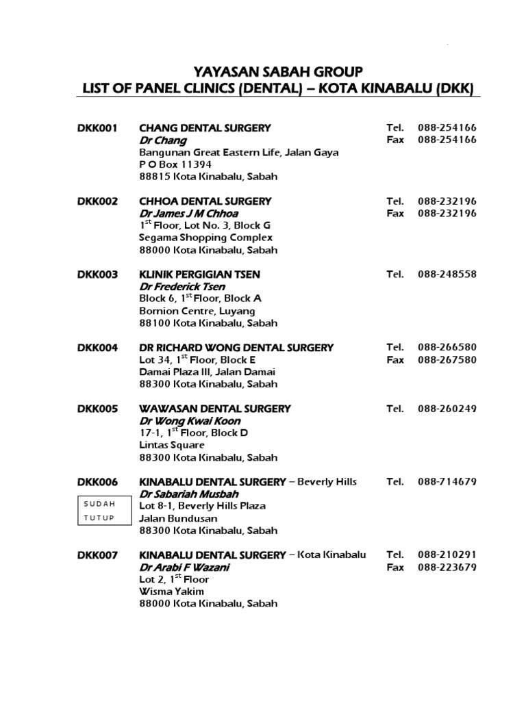 Klinik Pergigian Kota Kinabalu / Hospital, dentist & dental office address:. Klinik pergigian sulaman dirba šiose srityse: Su šia įmone galite susisiekti el. Get their location and phone number here. Clean environment, modern and uses high technology equipment to provide the best dental treatments for our lovely patients. Klinik pakar pergigian orthodontik p.